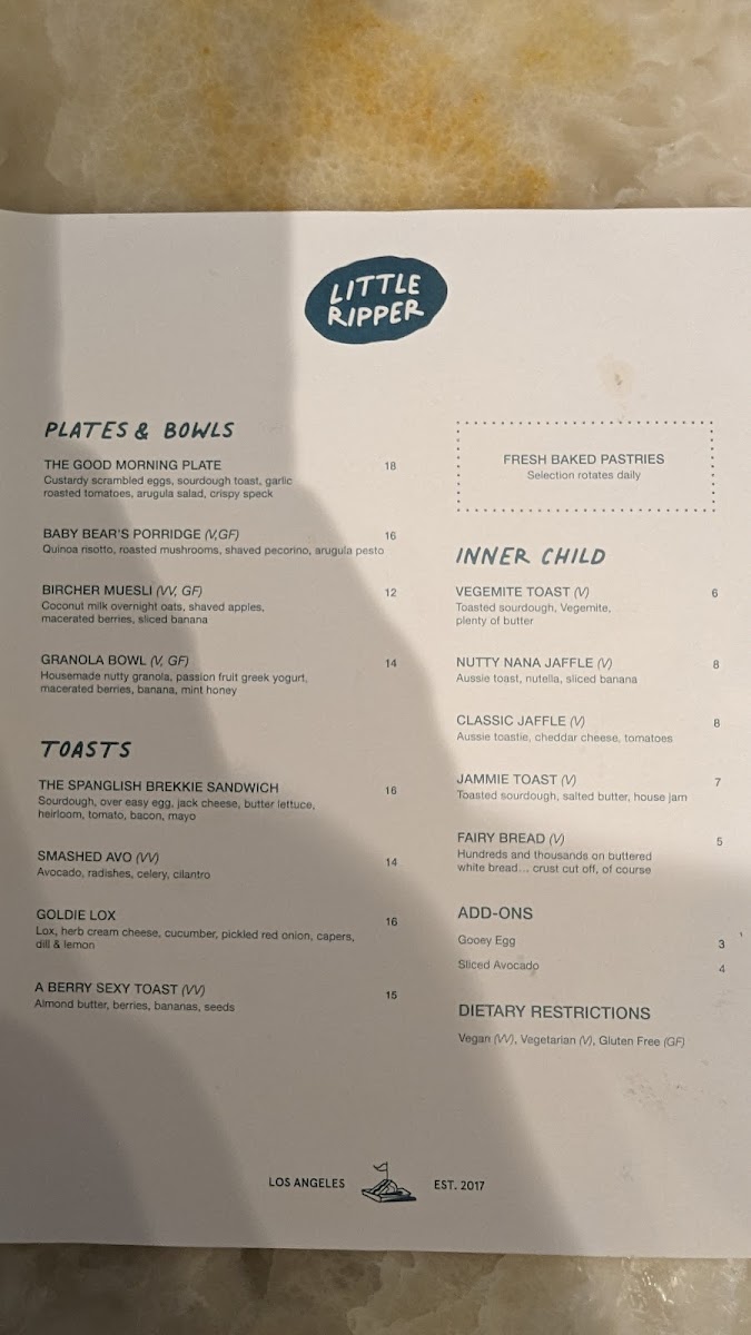 Welcome to Little Ripper LA, a delightful Aussie-style café nestled in the heart of Los Angeles. With a menu that celebrates both comfort and creativity, Little Ripper LA is a hidden gem that caters to a diverse palate.